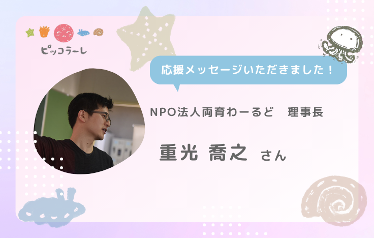 本日は、NPO法人両育わーるど理事長の重光喬之さんからいただいた応援メッセージをご紹介します🍀