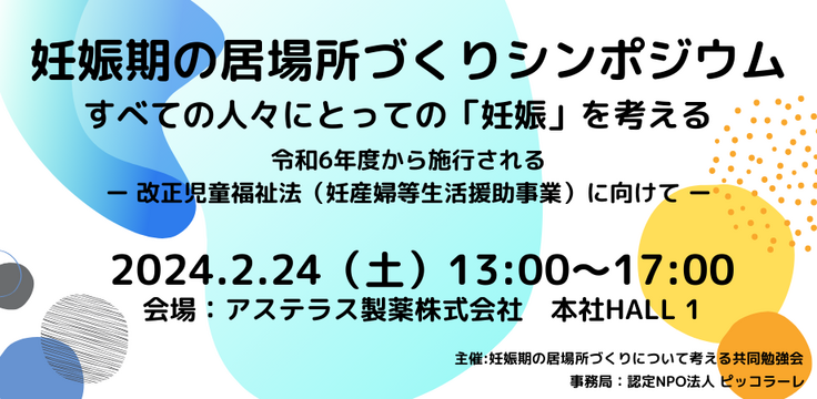 令和6年4月に施行される改正児童福祉法において「妊産婦等生活援助事業」が新たにスタートします。今回、同事業の開始を前に、妊産婦等の生活支援や居場所づくりのこれまでの取組やこれからの課題や展望について、セクターや団体・機関等の壁を越えて共に学び、考え、対話する機会を設けるため、本シンポジウムを開催することになりました!