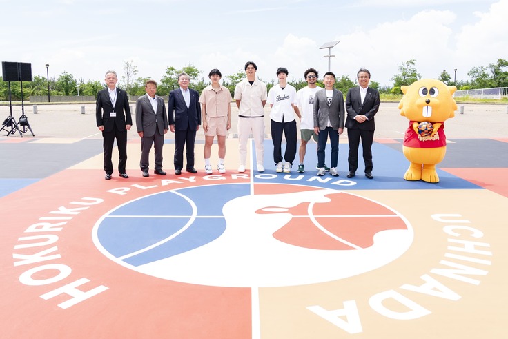 北陸エリアの復興を願うバスケットボールコートが完成!石川県出身の赤穂3兄妹も駆けつけた寄贈式を開催。