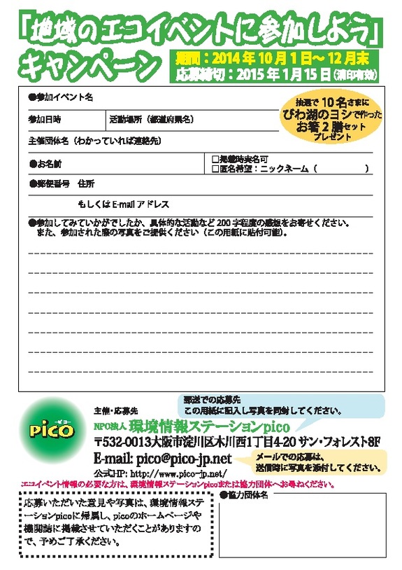 チラシの応募ページ http://www.pico-jp.net/images_pico/2014ecocampaign_2.pdf