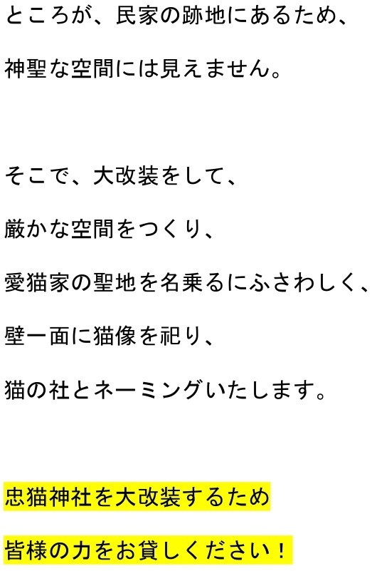 忠猫神社を大改装して健康祈願と供養の聖地にしたい!