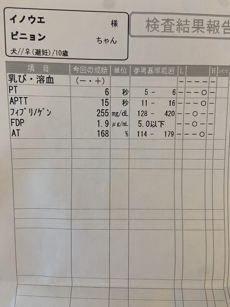 (検査結果の用紙、♀になっていますが男の子です🐶♂笑)