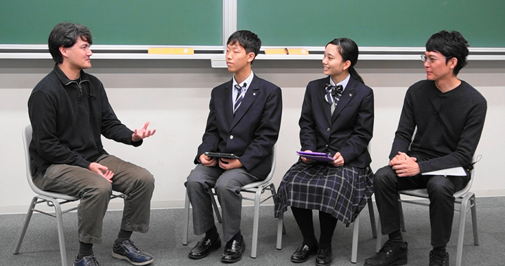 福岡舞鶴高校のお二人にインタビュアーになって頂き、九州大学の楊井がモデレーターを務めました。