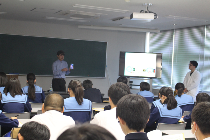 大利中学校の2年生40名×2クラスを筑紫キャンパスに迎えて「ディスプレイの仕組みに触れてみよう」という体験型授業を実施しました。
