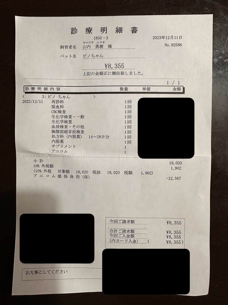 「もう大丈夫ですよ」って言葉を期待してので泣きそうになりましたが、まだピノは元気に遊んでいますし、生きています。