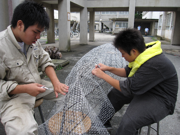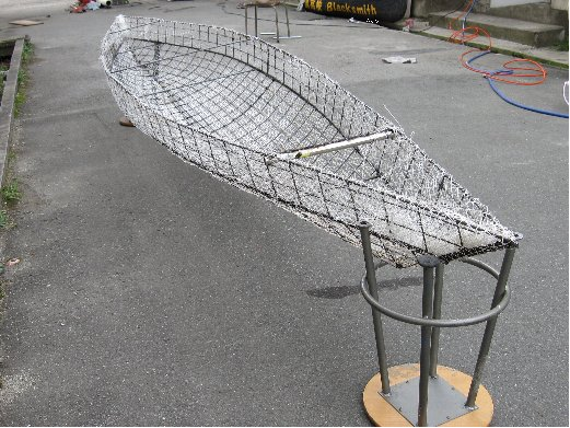 2.スチールメッシュ(溶接)とビニロンメッシュ(結束)で船体の形を作ります。