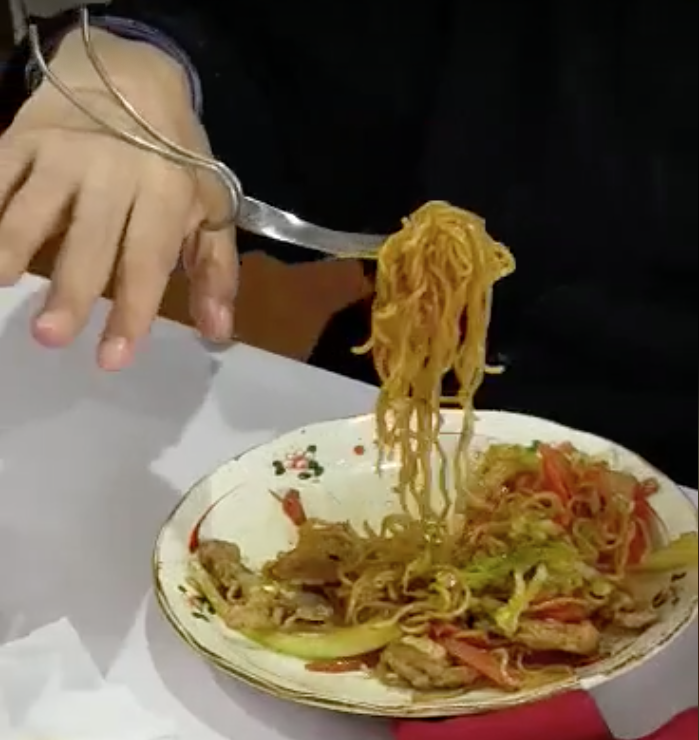 Vgripフォークを、通常と違って逆さまに装着して、焼きそばを楽しみました。この使い方でも、Vgripフォークは手にしっかり固定が出来ているのでこの使い方もありです。Yutaka