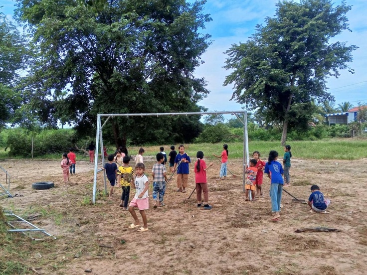 今回Plas+が訪れるベンロヴィア・レー小学校より子供たちが私たちを迎えるために学校を掃除している写真と遊具、庭を建設している写真が現地のカウンターパートより送られてきました!