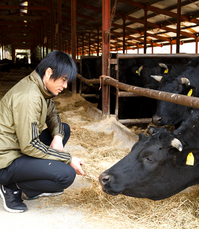甲州ワインビーフを育てる、小林牧場の小林英輝さん。