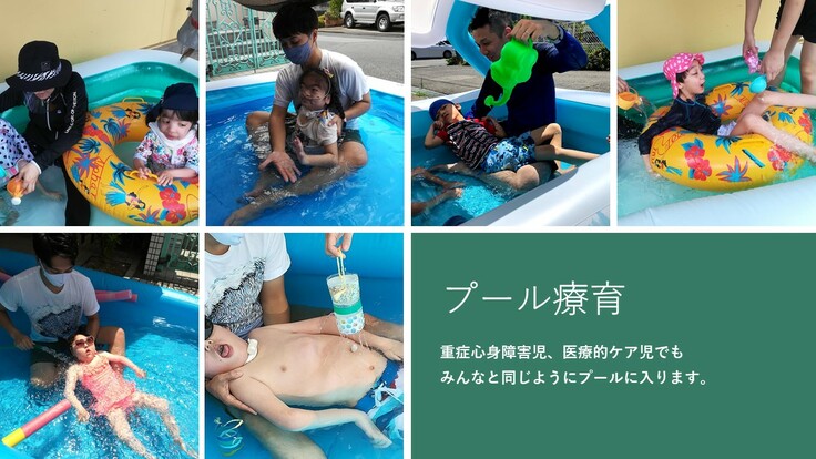 重症心身障害児、医療的ケア児でもプールに入って水遊びなんて事もします。