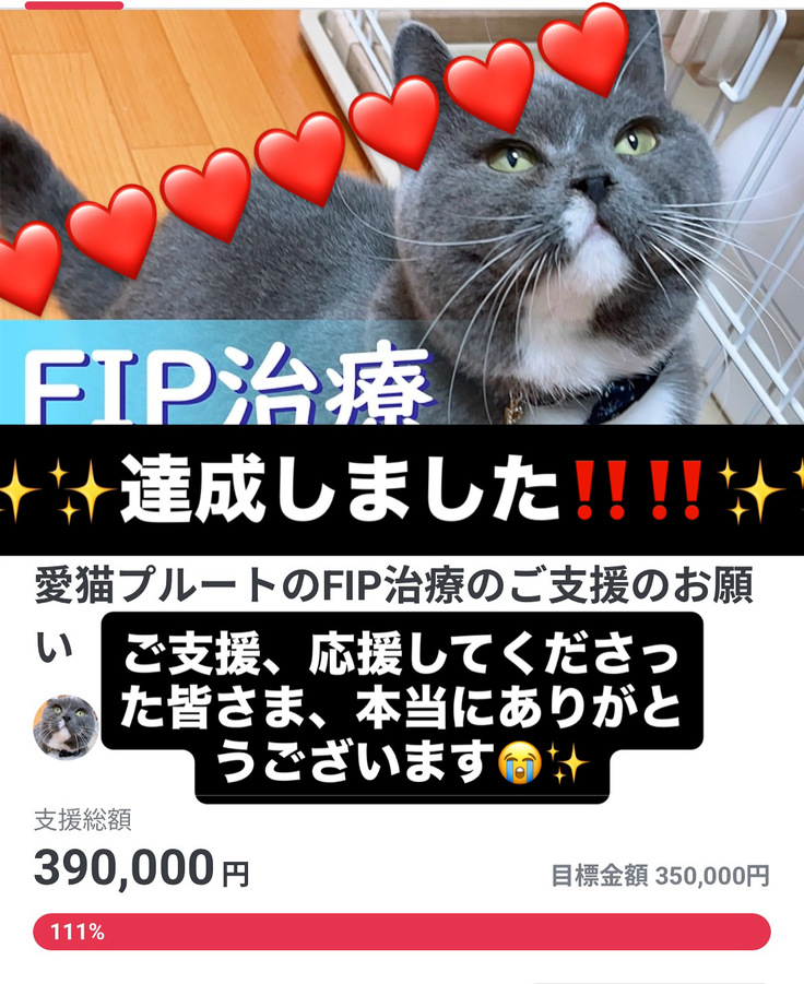 猫伝染性腹膜炎を患ったポンちゃんの明日をつないで頂けないでしょうか