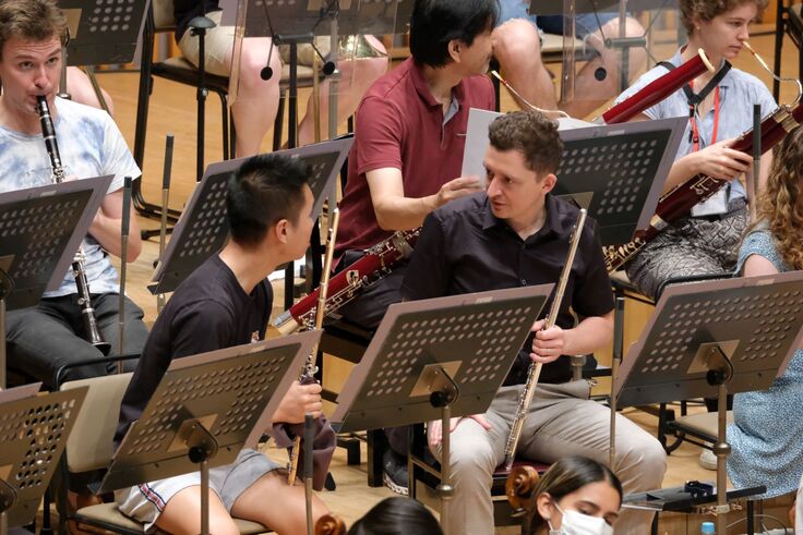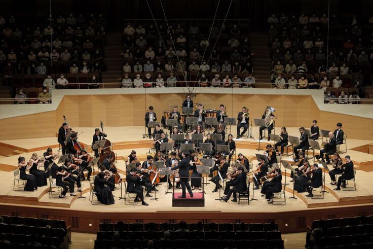 「PMFオーケストラ・アカデミー」は、オーディションに合格した若手演奏家が編成する PMFオーケストラを中心に、ウィーン・フィル やベルリン・フィル、フィラデルフィア 管、ロサンゼルス・フィルなど欧米の著名オーケストラ の首席奏者たちが指導にあたると ともに、多彩なコンサートに出演します。指揮者には注目を集める若手、指導力に定評のあるベテランなど若手音楽家との共演に定評のある著名指揮者をお招きしています。 PMF2023は、近年最多となる1,090人のオーディション受験者から選抜された22カ国・地域からの74人が参加します。