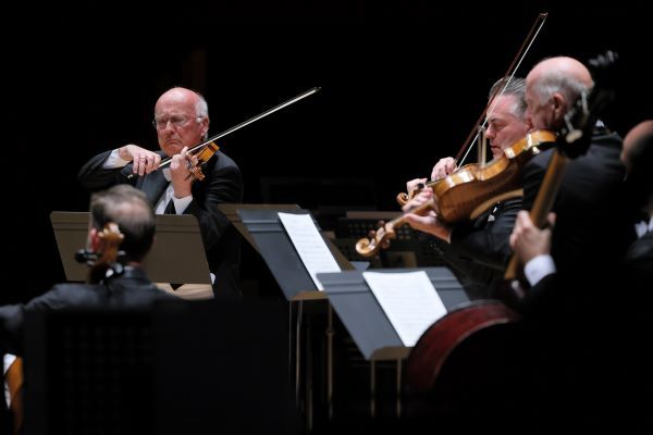 PMFウィーンがコンサートマスター、各弦セクションの首席として演奏を引き締めます。