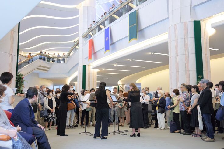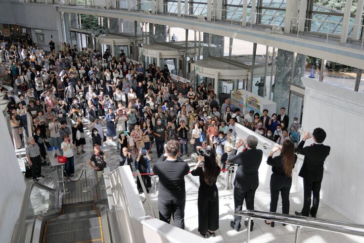 開場時の階段上でのファンファーレも定着し、初期の頃には驚いて振り向かれていたお客様も今ではスマホを用意してスタンバイしてくださっております。当日の様子をご報告いたします。