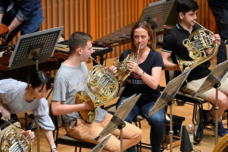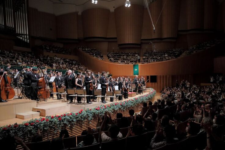 PMFの中心「PMFオーケストラ・アカデミー」。オーケストラ・メンバーを選抜するオーディションは毎年合格倍率が高く、今年はとくに2015年にオーディションがすべてオンライン化されて以降最高となる世界70カ国地域の1,344人が挑戦し、その狭き門をくぐり抜けた23カ国地域の95人が、PMFオーケストラを編成します。