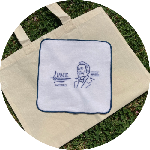 PMF2025クラウドファンディングご支援者様には、プロジェクト限定バーンスタインイラスト入り今治製ミニタオルハンカチを進呈いたします。(一部のリターンメニューを除きます)
