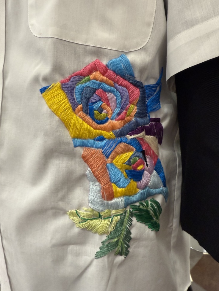 絵画作品使用料と刺繍作業代という2つの仕事が生まれたシャツになりました。