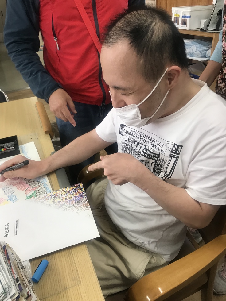 アトリエやっほぅ‼は、知的に障がいのある方が通所する京都市ふしみ学園(生活介護施設)にて創作活動を行っています。