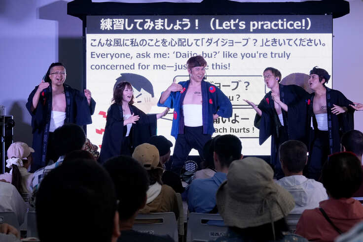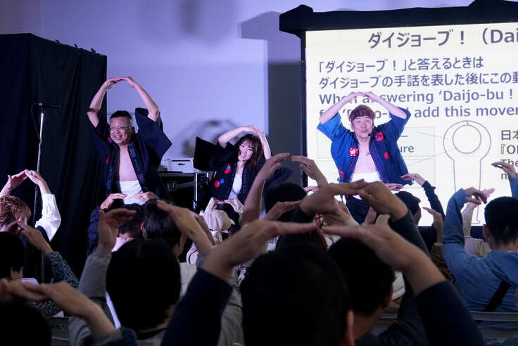 そのダイジョーブ音頭の手話を、会場の皆さんにエンターテイメントを交えたレクチャーをして、最後は一緒に会場全体でダイジョーブ音頭を踊る。