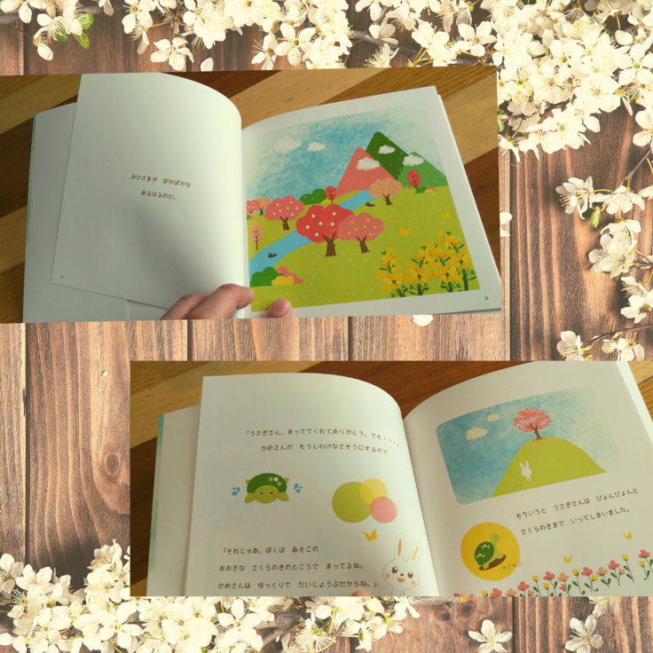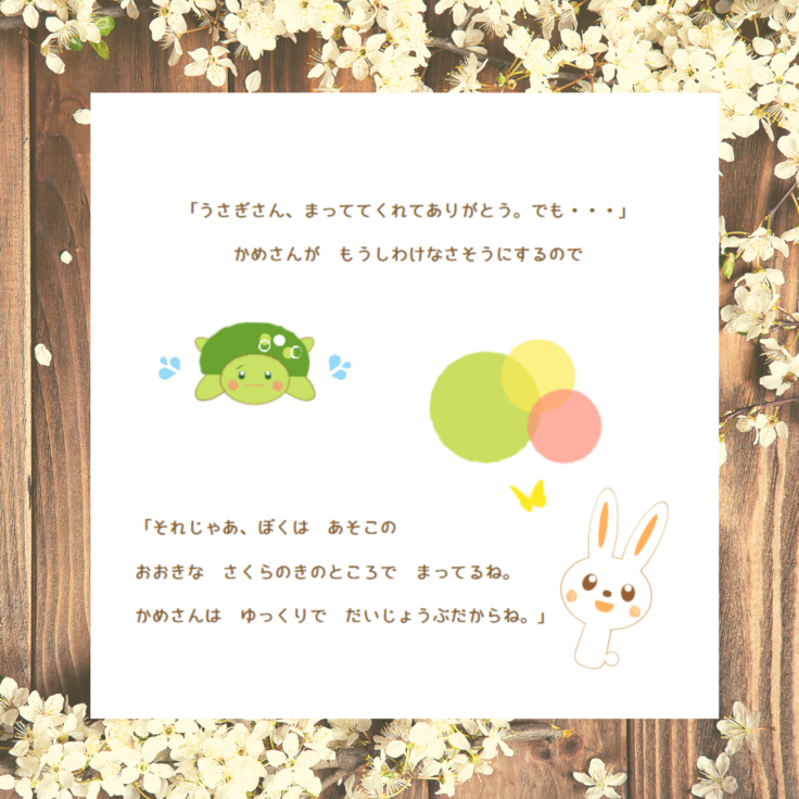 ある暖かな春の日にうさぎさんとかめさんが桜の木の下までお散歩に出かけます。