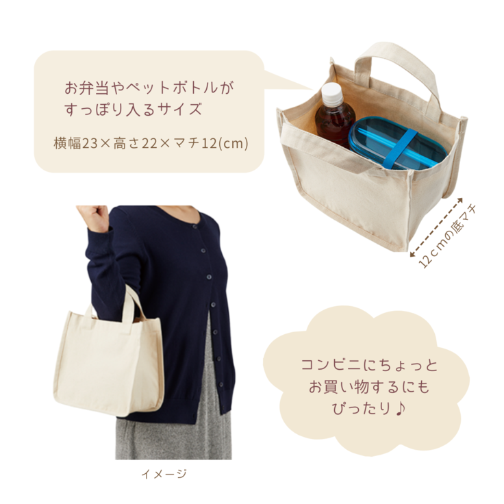 ・サイズ:横幅23×高さ22×マチ12(cm)・容量6L
