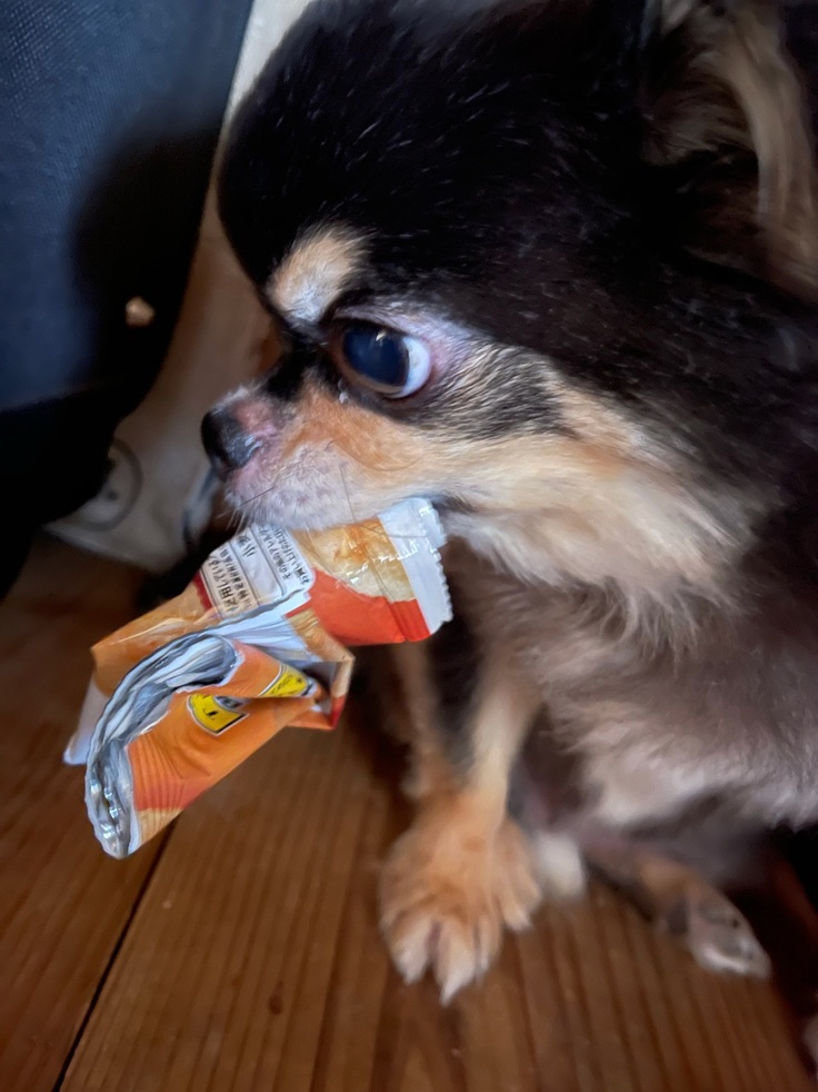 (ゴミ箱からお菓子のからを取ったぽんち😆)