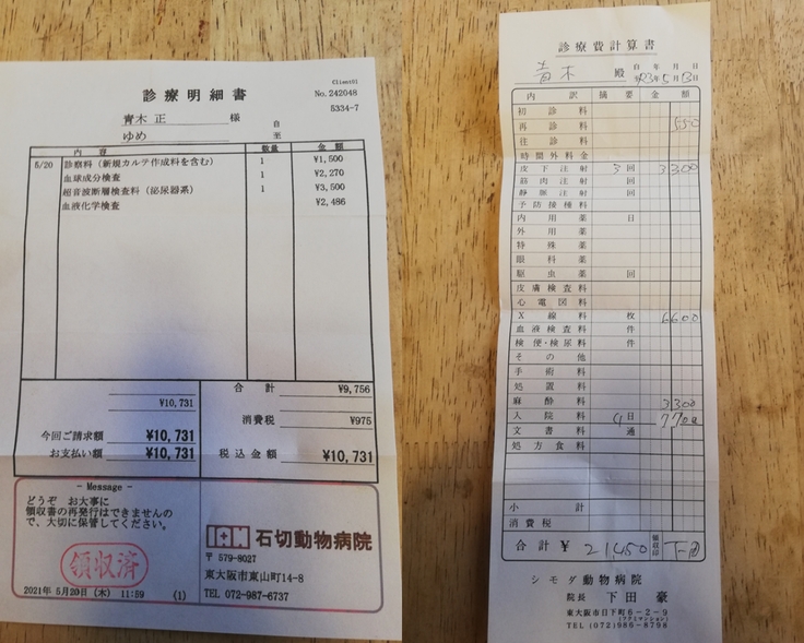 いつもお世話になっていた病院や、別の病院でも検査、点滴、お薬投与をしてもらいました。