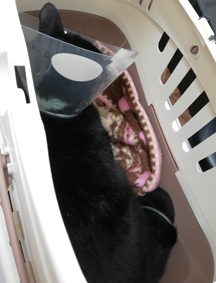 確実に良くはなっていますが、まだ少し貧血なのと、膀胱に菌が残っていること、手術の傷跡も痛々しい状態で、完治までにはもう少し時間がかかりそうです。