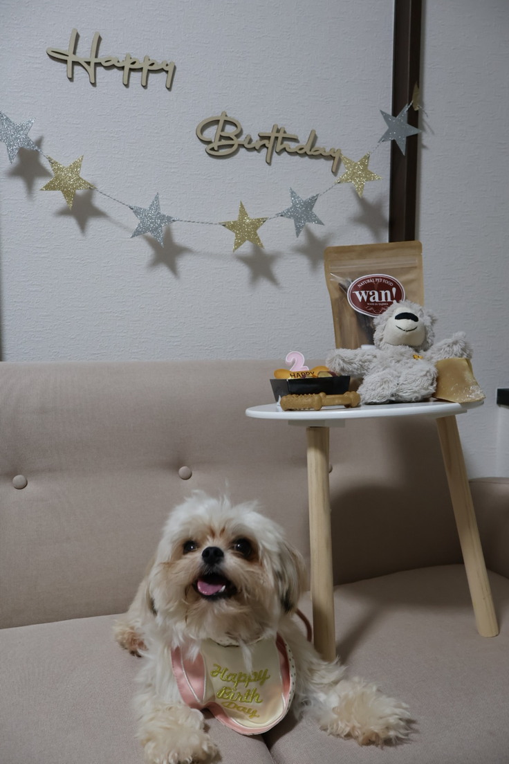 少し前にはなってしまいますがぽんずが2歳の誕生日を迎えることができました。術後落ち着いてきたタイミングで家族でお祝いをしました。病気が見つかったときはもしかしたら誕生日を一緒に迎えられないかもしれないと不安になりました。誕生日を迎えられた日は本当に本当に嬉しかったです。がんばってくれてありがとういっぱい伝えました。これから先も一緒にお誕生日を迎えられるように願っています。
