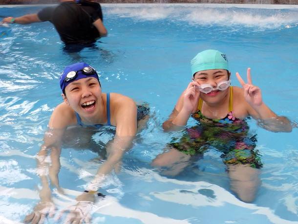 障害者・児にマンツーマンで水泳指導行っているボランティア団体です。障害者も健常者も同じようにプールを楽しめる社会をめざし活動をしています。