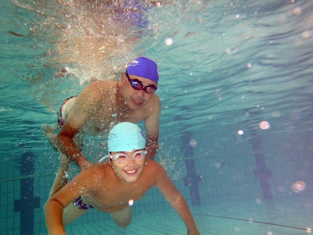 初めまして、プールボランティアです。私たちは、近所の公営プールで障がい者・児とともにプールに入り水泳指導、プール・リハビリをマンツーマンで行っています。水の中を歩く動作、浮力を活用しての運動、