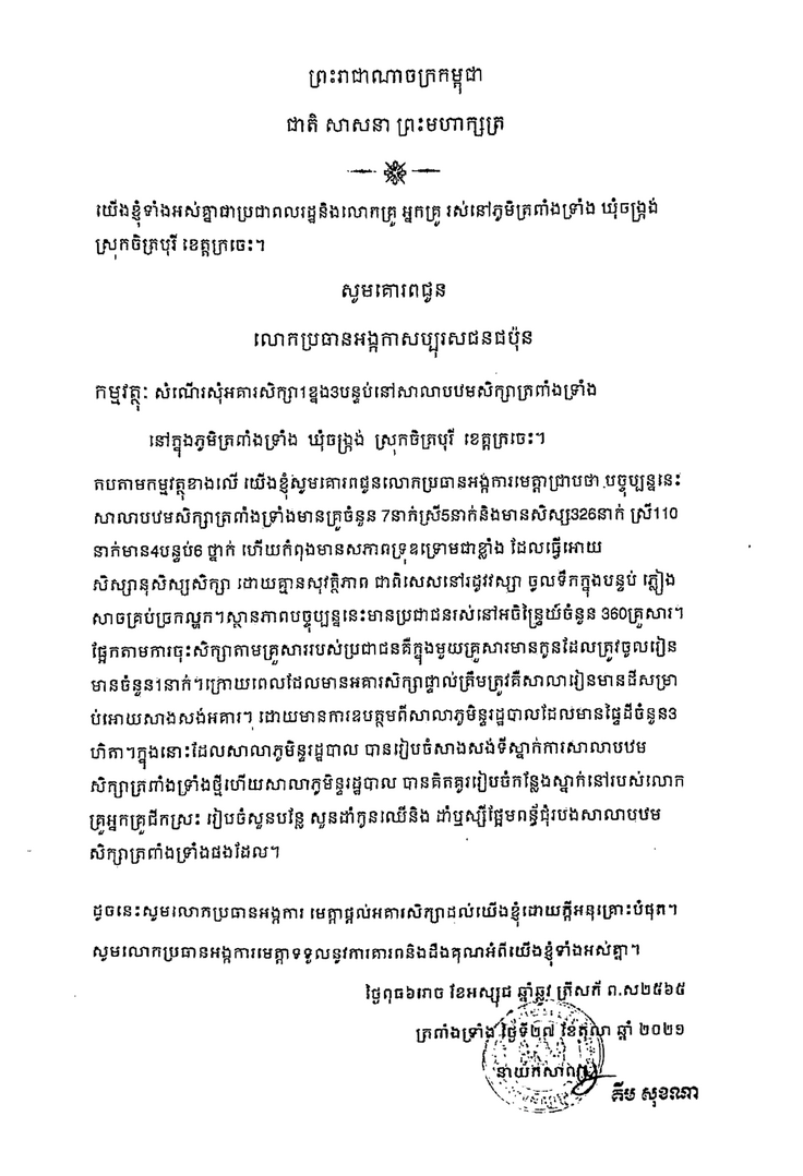 【寄贈に関して】 寄贈先であるカンボジア・トロペアンロレアン村小学校より、今回寄贈する物品(寄付金等も含む)の受け入れとクラウドファンディングのストーリーに公表されることに関しての同意を得ております。