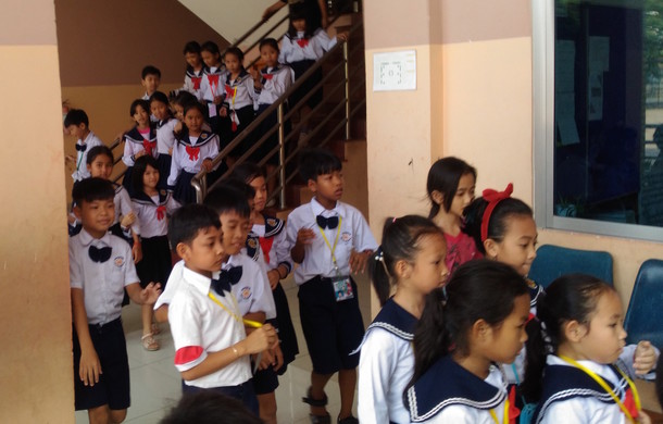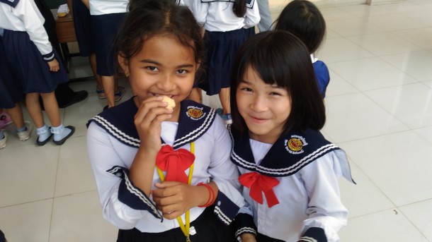 本日は、プノンペン市内のNew World Schoolにお邪魔しました。学校名は英語ですが、カンボジア人が運営する私立校です。幼稚園生から高校生まで2,000人ほどが通う大きな学校です。