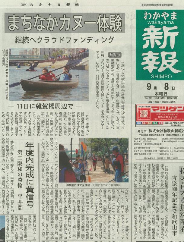 それから、わかやま新報さんでカヌー体験会を取り上げていただけました!