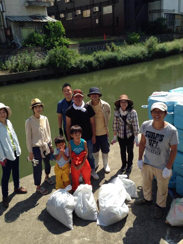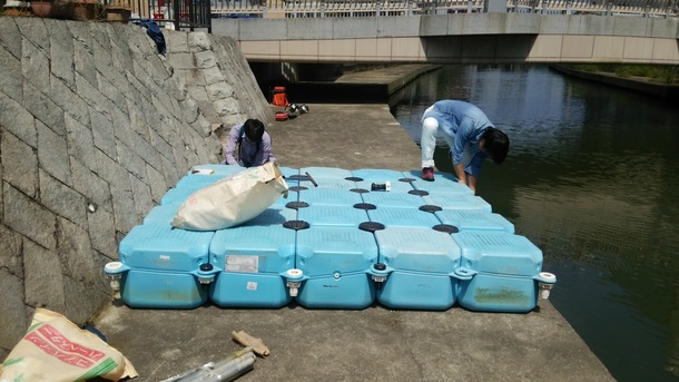 明日の本番に向け、水辺の清掃と桟橋の設置を行いました。