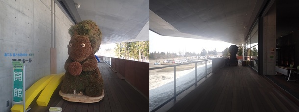 ツキノワグマよりも大きく、頭上にはトキが飛んでいますネ