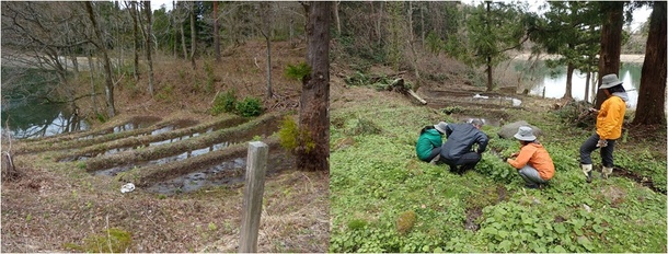 山奥のひっそりとした場所に、いくつものビオトーブがありました。雪解け後の清水平の整備をお手伝いさせて頂きました