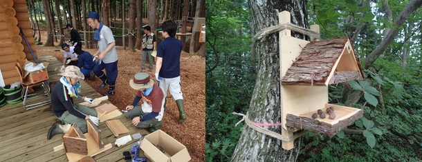 各グループで二ホンリスの餌台を1つ組み立てます。