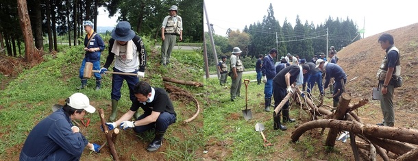 作業が二手に分かれており、小径作りの作業を終えたグループの仲間が応援に駆けつけてくれました。