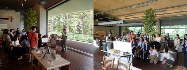 まずは、森のホールで二ホンリスの暮らしに纏わるお話を…