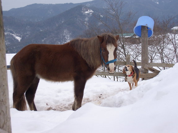 引き馬担当、好奇心旺盛で火を見ても怖がらず近づいていきます。