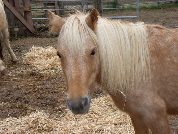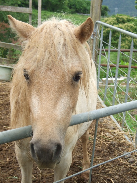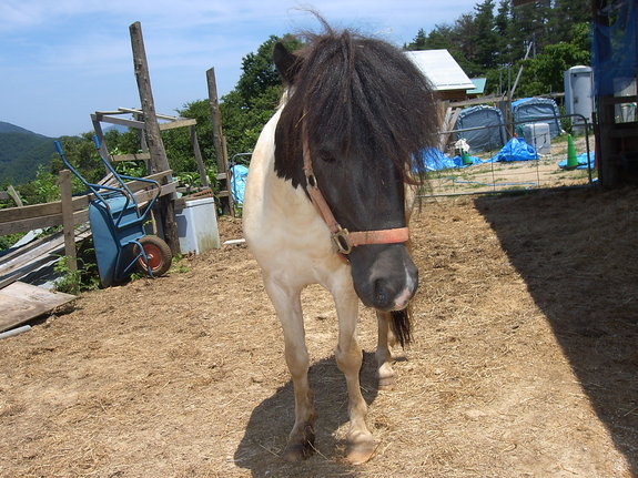 背中まで85センチ世界最小の種類の馬です。うちで一番のお年寄り。おっとりした性格、敏捷性に乏しいお年だから?でも美人でしょう?頭が良く上手に扉を開けます。おっとりした性格なので山林を訪問者と共に散歩してゆったりほっこりした気持ちにさせてくれます。