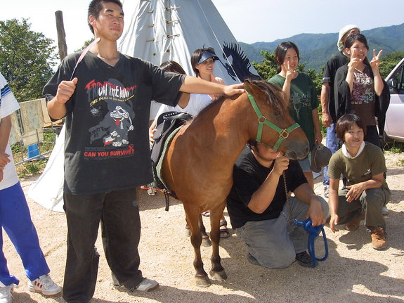上の写真は、大学生の訪問。ティピーを立てる練習に来ました。三角錐のテント ティピー 西部劇でインディアンの住居です。知っていますか?テントの中で火を炊くことが可能なんです。中の広さは畳8畳ぐらいです。