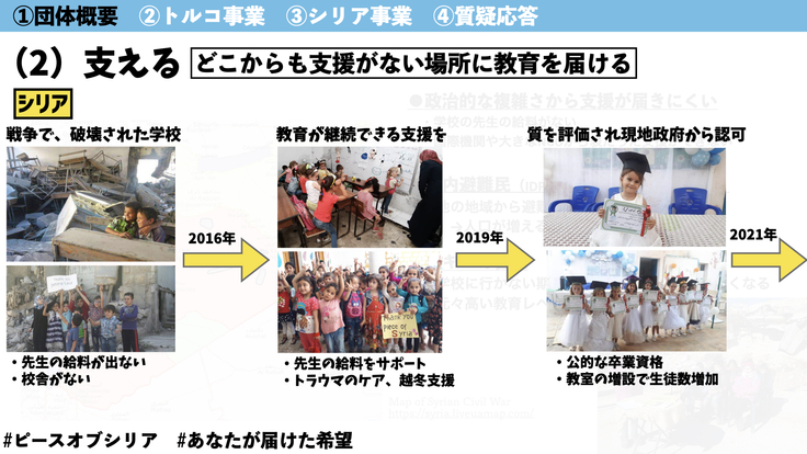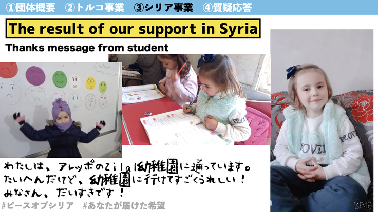 (無視された世代といっても過言ではないシリアの子どもたちを救ってくれて本当に感謝しています。感謝してもしきれないです。