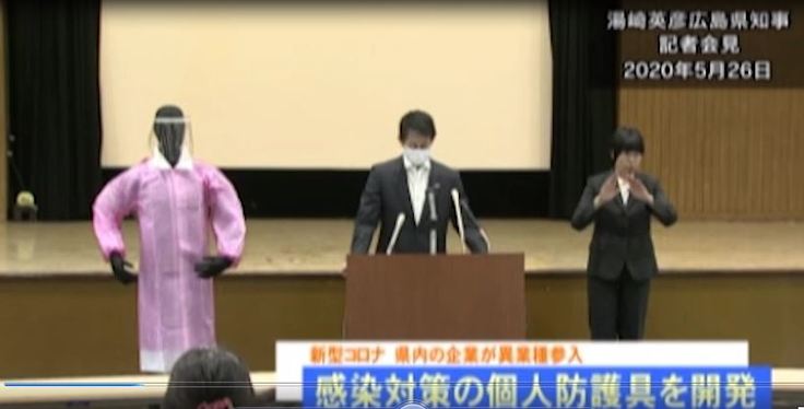 5/26に、広島県の湯崎英彦知事が記者会見を行い、その中で、本ガウンプロジェクトが取り上げられました!