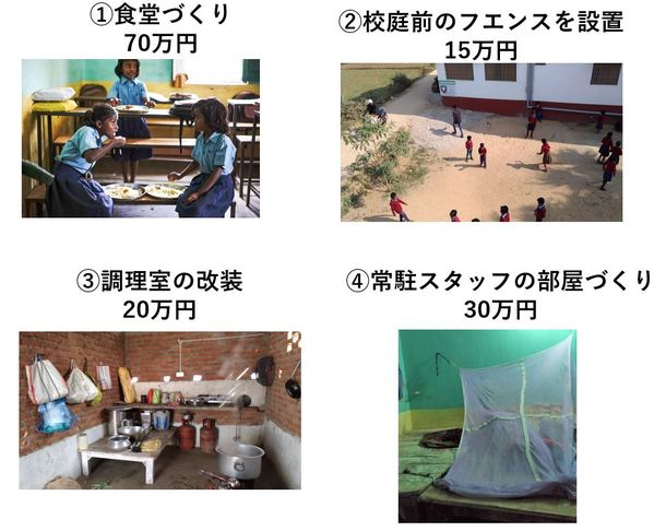 今回のプロジェクトでは、皆様からからご支援をいただけた暁には、政府により義務化された監視カメラを設置することが可能となります(4教室、給食室、屋上、校門、校庭) 。