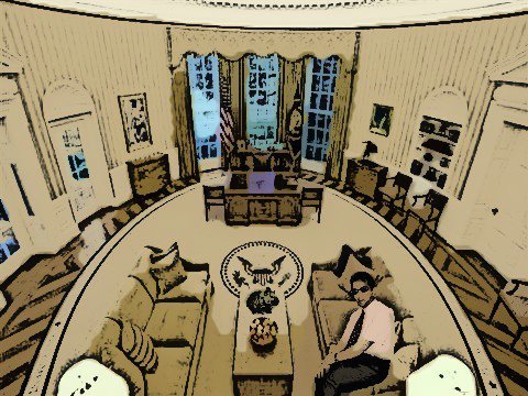(大統領官邸 執務室 写実的な作画です。実際の官邸を調べて、写真から起こした柄です。)