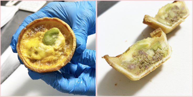 最後に、こちらのキッシュをオーブンで解凍して、味や食感を確かめました。まだ冷たさが残る程度の解凍でしたが、味がギュッと詰まって濃厚で、食感も具材がふわっと本来の柔らかさを保っており、大変美味しくいただきました!