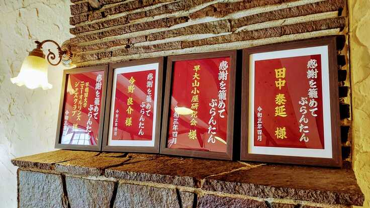 同時に、二階の壁にリターン品の「名前入りペナント」を取り付けます。