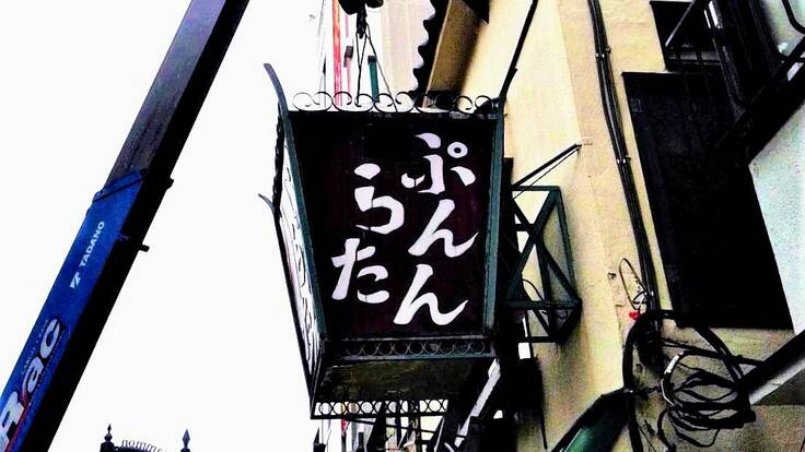 「ぷんんらた」のロゴ入り看板は、創業時からある当店のシンボルでした。